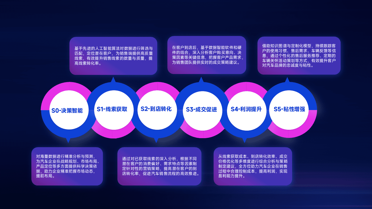 通过拓宽潜在客户来源、、、优化线索分配并提高到店转化率,,以增强销售效率。。。。同时,,,,利用线索数据不断优化分析模型,,,,有效提升转化率,,,扩大营销影响力。。。